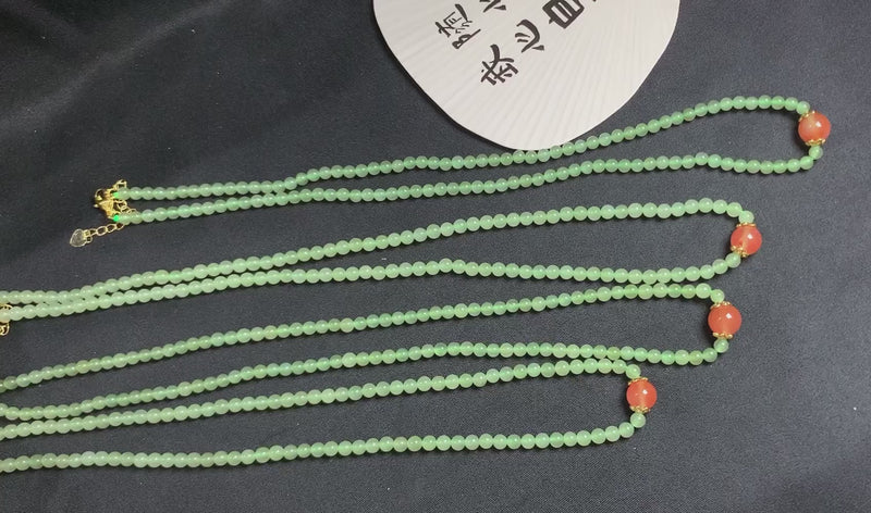 Natural Hetian 108-Bead Necklace | Long Fringe Pendant Lariat