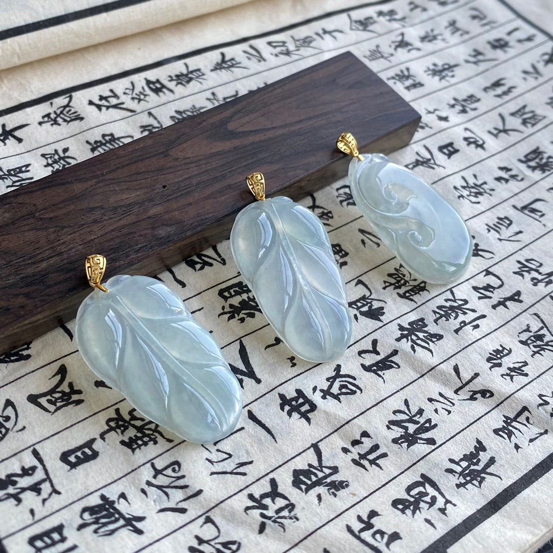 18K Gold Icy Jadeite Leaf/Ruyi Pendant
