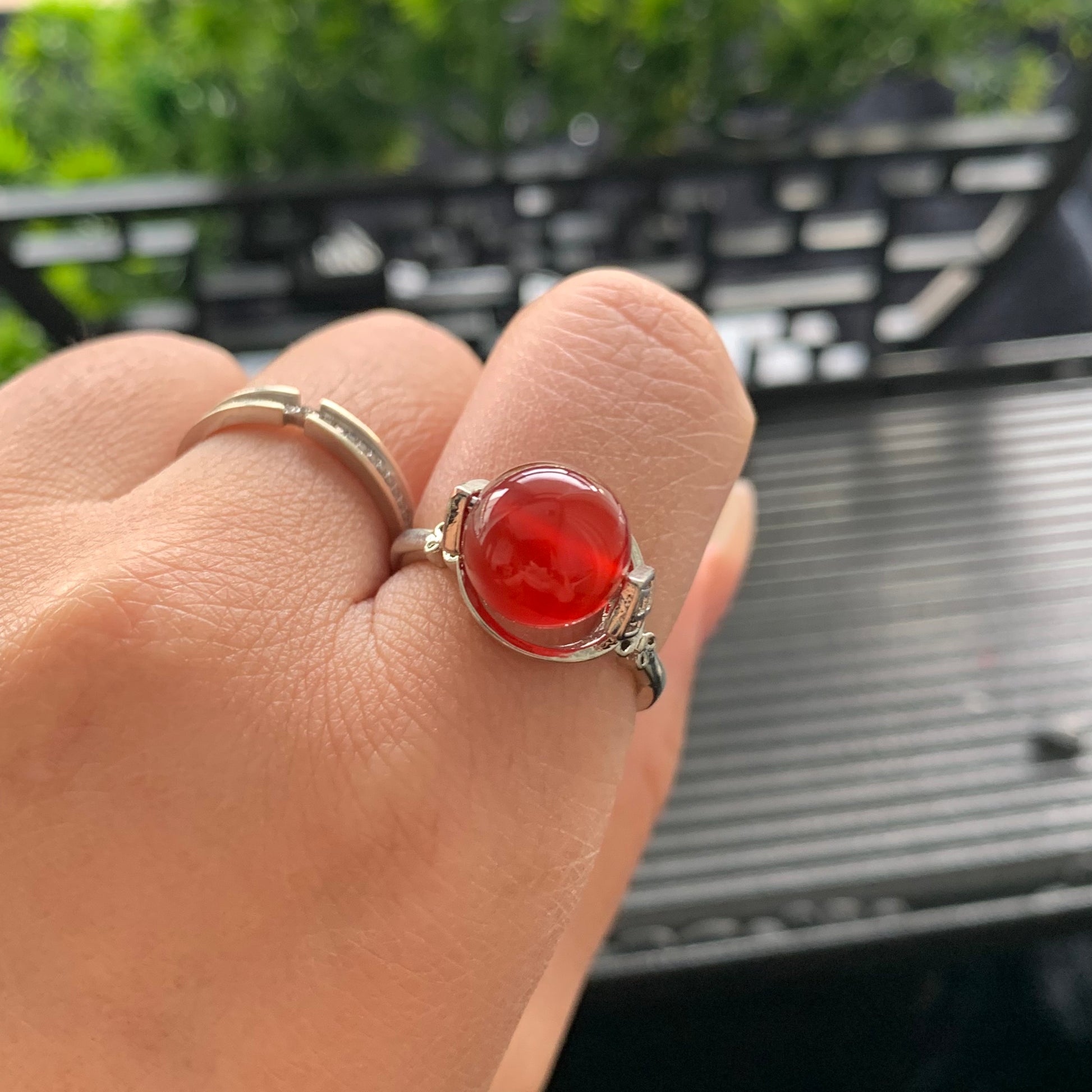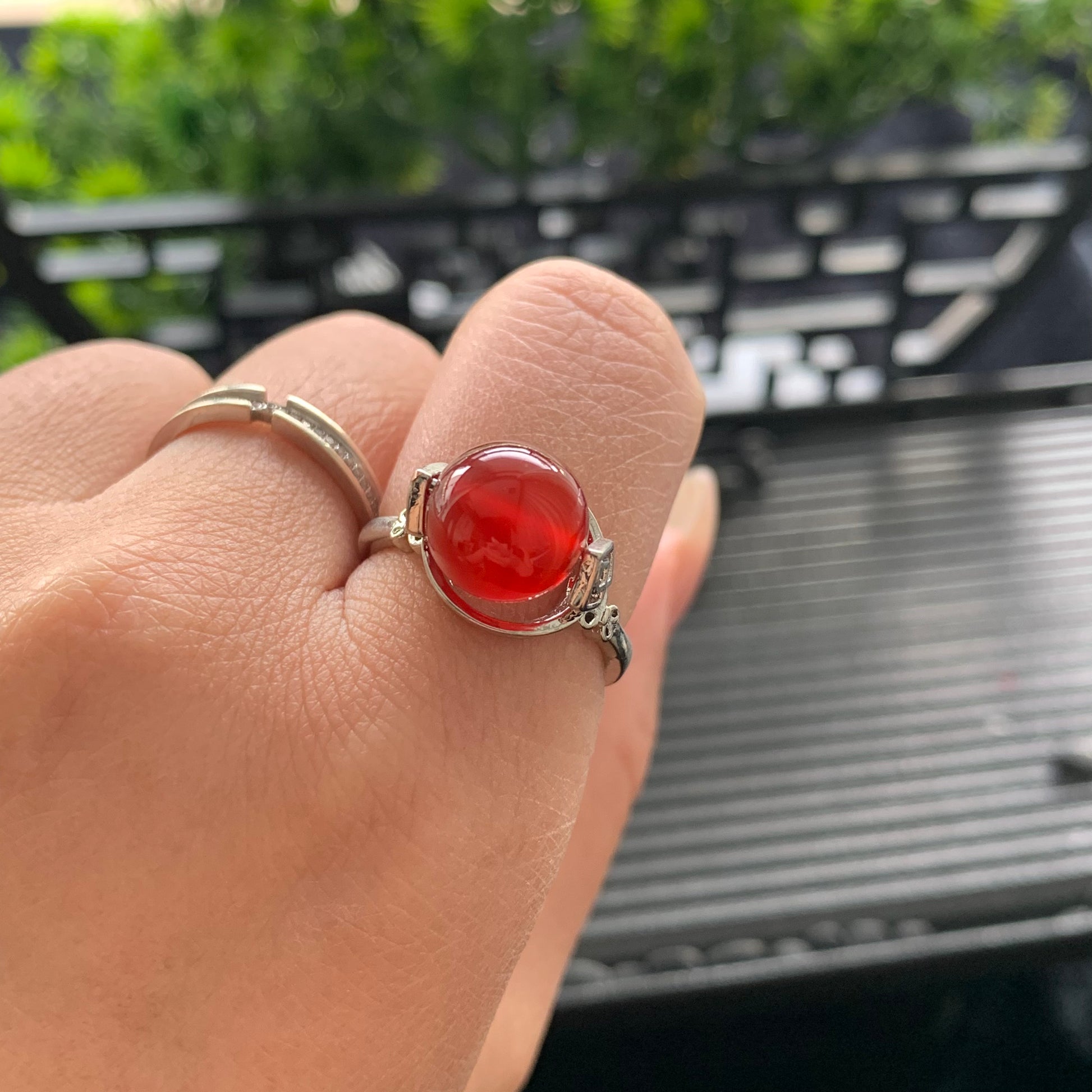 This agate - inlaid ring features a natural red agate stone with rich, vibrant luster. Set in sleek metal with a minimalist design, it blends natural charm and modern elegance. Perfect for daily wear or gifting, adding a striking pop of color to your look.