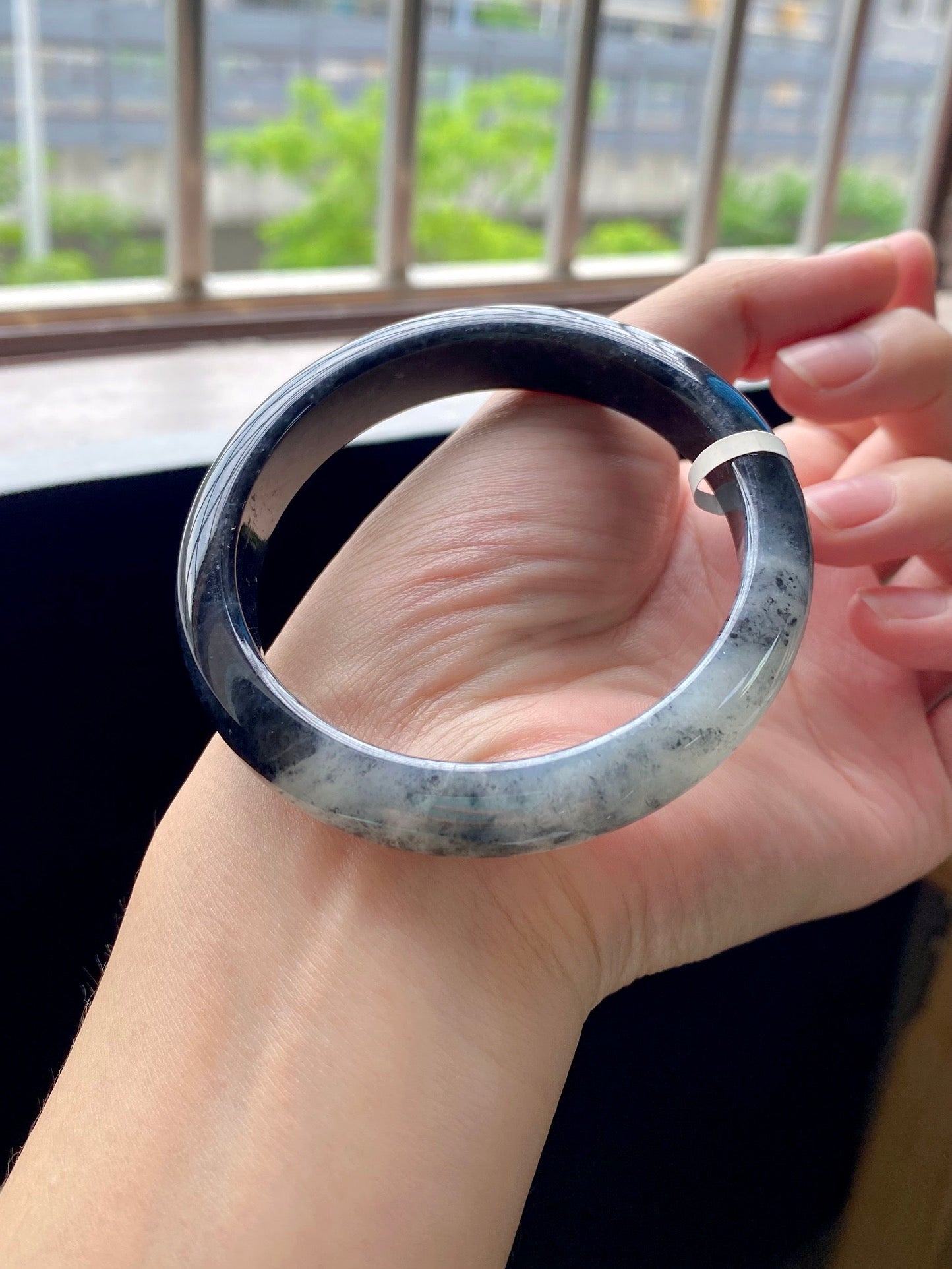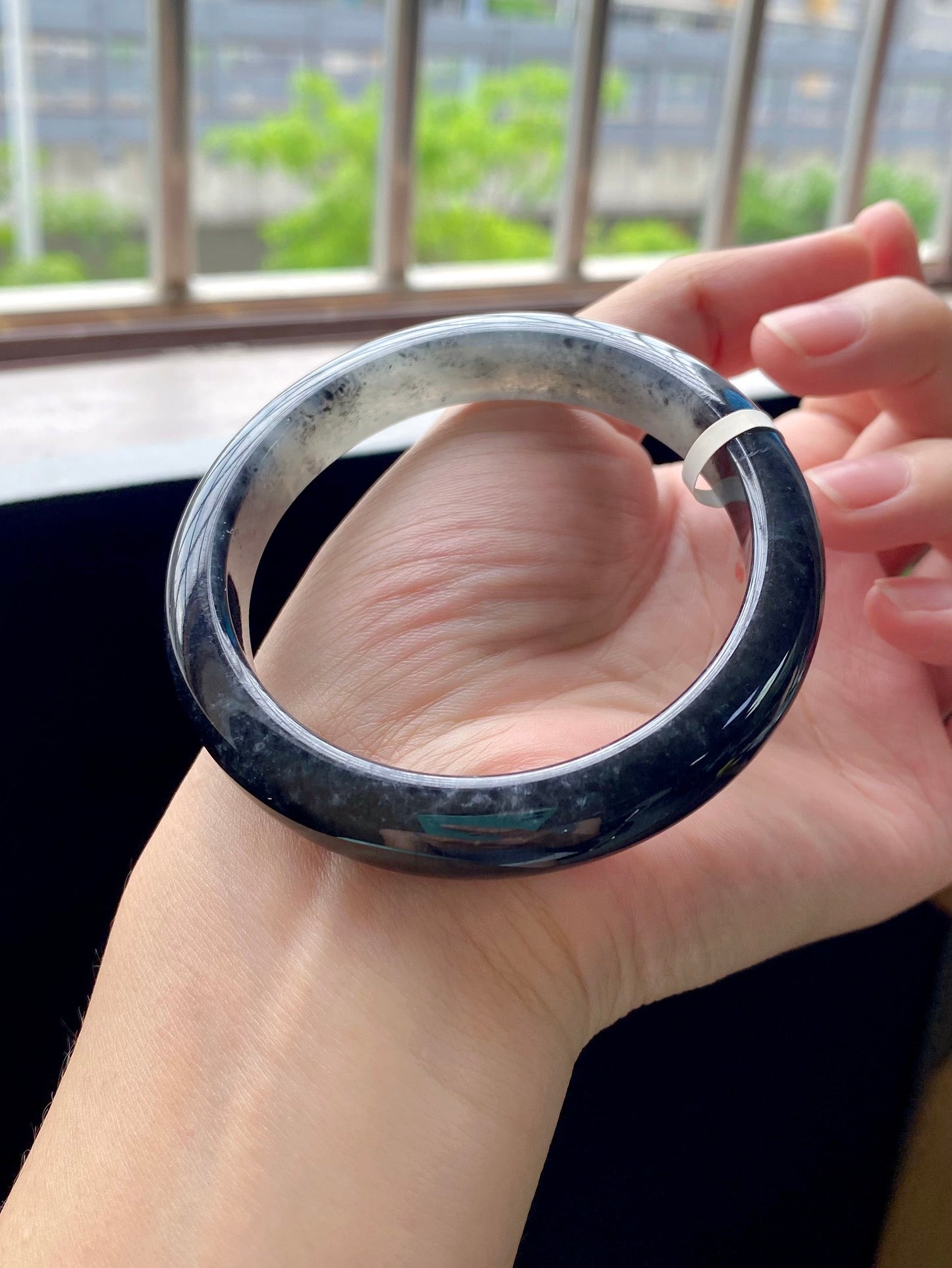 Black Half Mountain Half Water Round Bangle (Finished, Crack Special Offer) | Item No. HYY-4821 | Size O8.2-12-8.3-