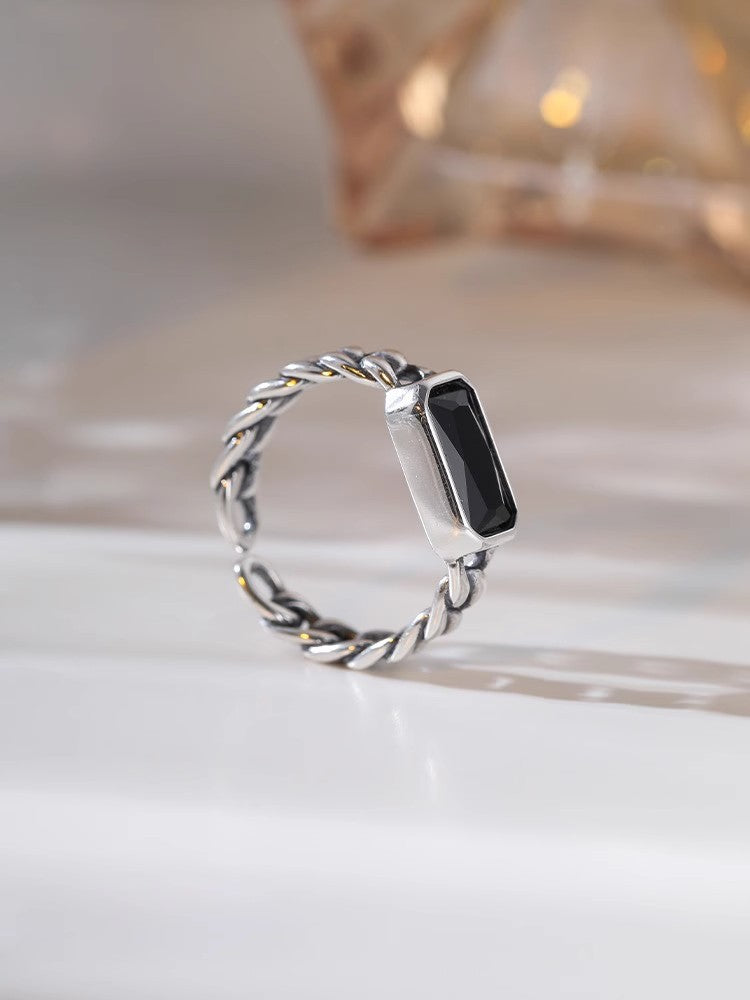 Adorned with natural black onyx and a chic chain - styled band, this ring merges edgy fashion with timeless allure. Black onyx is revered for symbolizing strength and protection, making it a stylish yet meaningful piece. Ideal for daily wear or elevating your look with a bold touch.