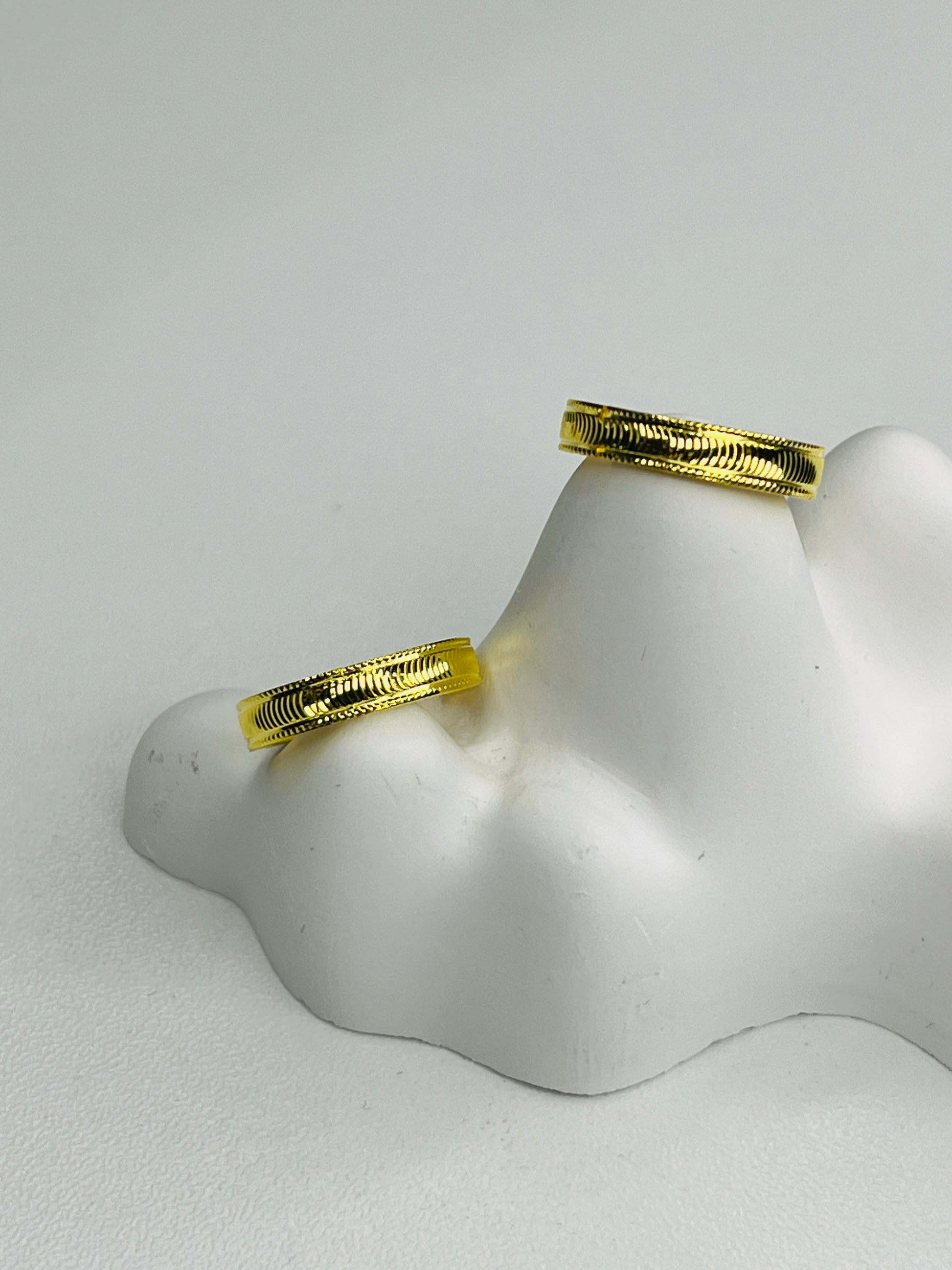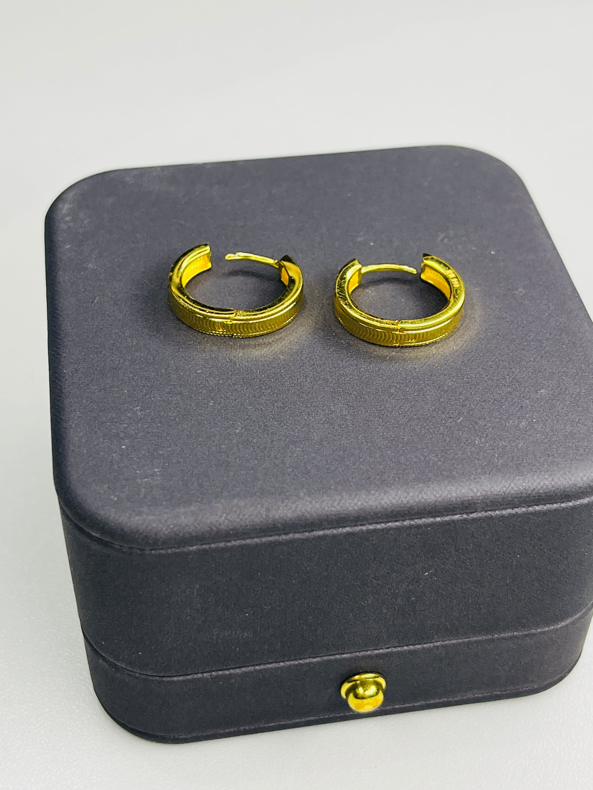 These hoop earrings feature a sleek design with a cat's eye-inspired pattern, crafted from silver and plated with warm gold. The textured detailing adds a touch of elegance, while the hoop style ensures versatility. Lightweight and easy to wear, they’re perfect for adding a subtle sparkle to daily looks or special occasions—ideal for those who love refined, trendy jewelry.