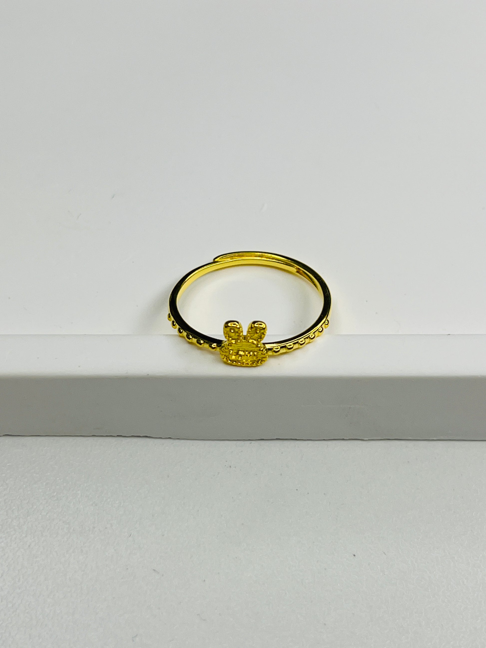 This ring features an adorable bunny ear design with intricate detailing, crafted from silver and plated with warm gold. The delicate band, adorned with tiny beads, adds a playful touch. Lightweight and adjustable, it’s perfect for daily wear or as a whimsical gift—ideal for those who love cute, charming jewelry.