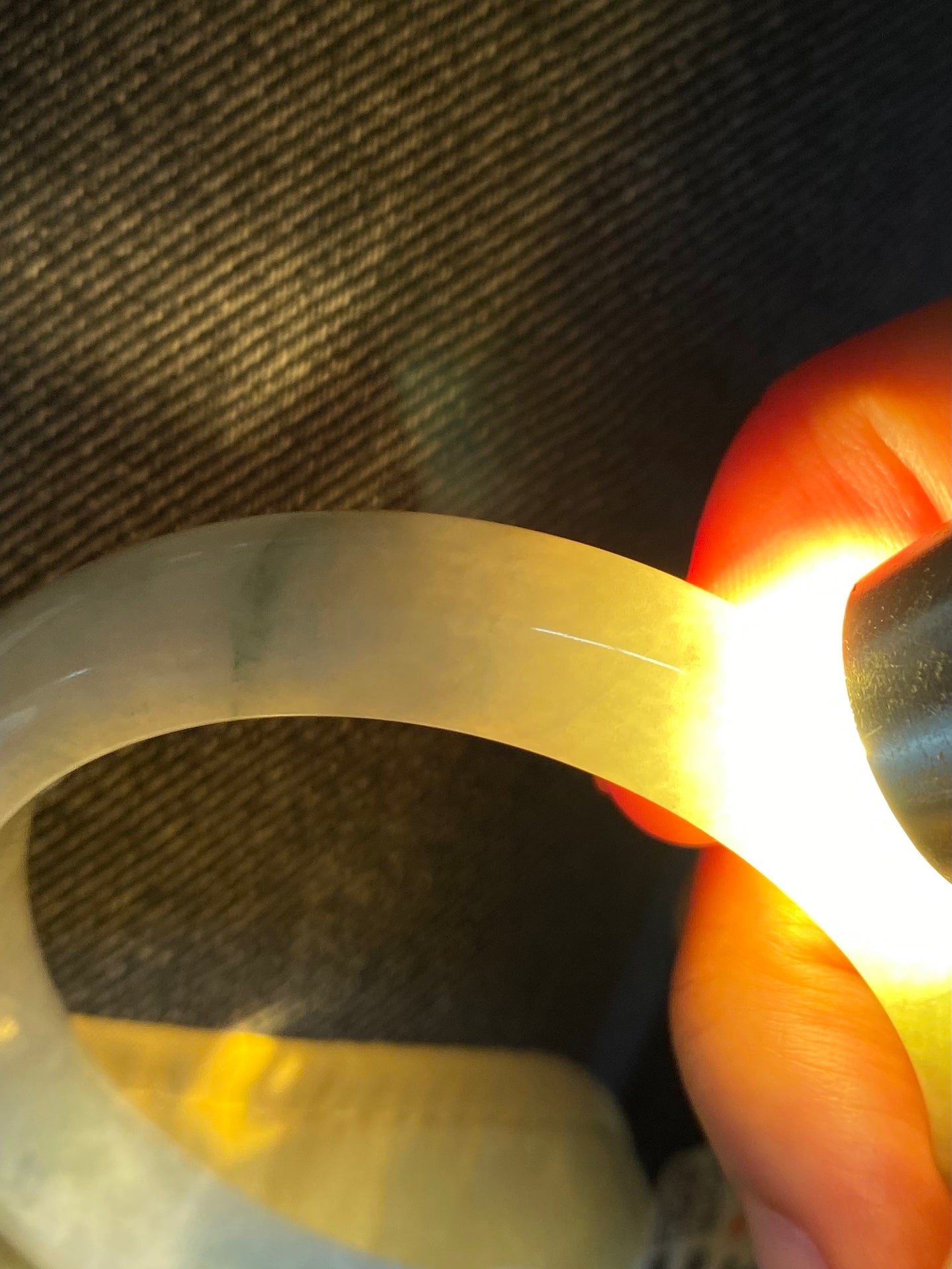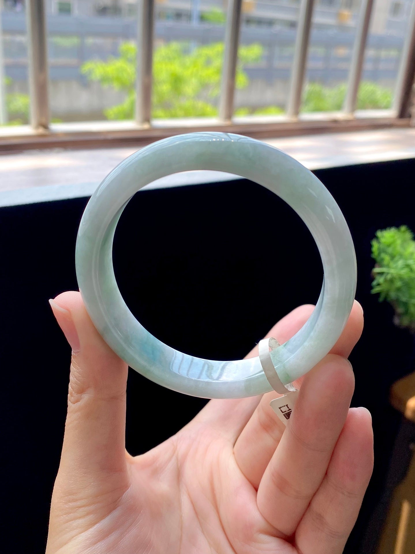 This Green Floral Round Bangle features delicate green floral-like patterns that add natural elegance to the jadeite. The classic round design fits adult wrists comfortably (O57.5 diameter), with its 12 width and 8 thickness balancing a sleek look and wearability. As a "Crack Special Offer" piece, it delivers great budget value, since minor cracks don’t impact daily use, and smooth polishing enhances the green drifts, making it a practical choice for casual outings and everyday accessory.