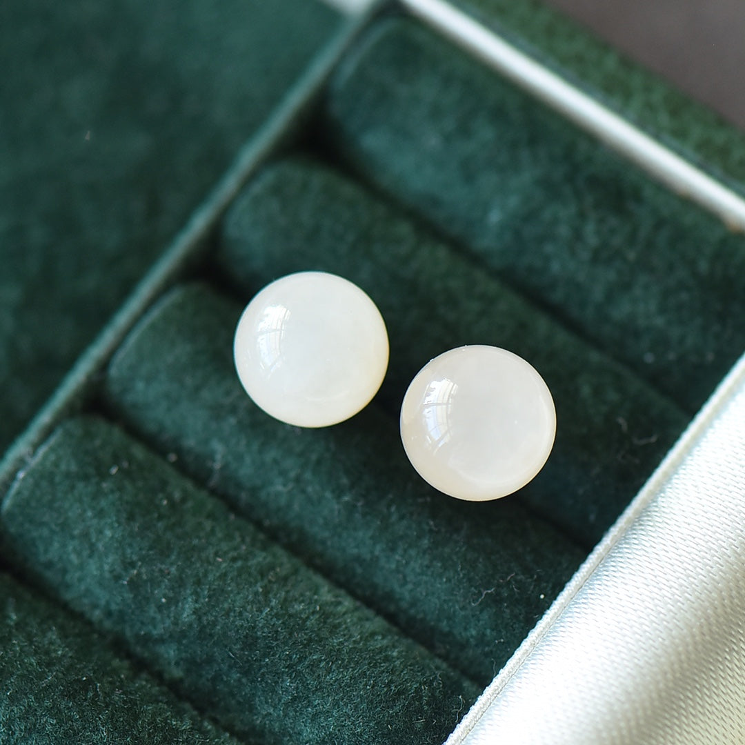 Crafted with natural white nephrite jade—boasts warm, smooth texture that exudes subtle elegance. Paired with durable hypoallergenic metal setting (e.g., S925 silver/18K gold), safe for sensitive ears. Minimalist design fits daily wear (work, brunch, dates) without being bulky. Symbolizes good fortune & peace, making it great for self-wear or gifting. Easy to care for: wipe with a soft cloth to retain luster. A timeless piece that elevates any simple outfit.
