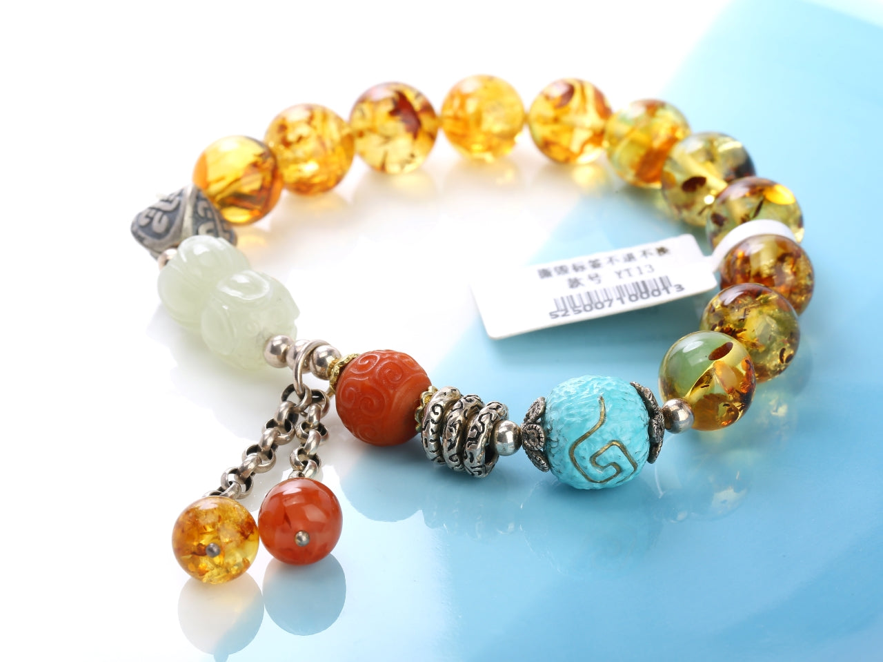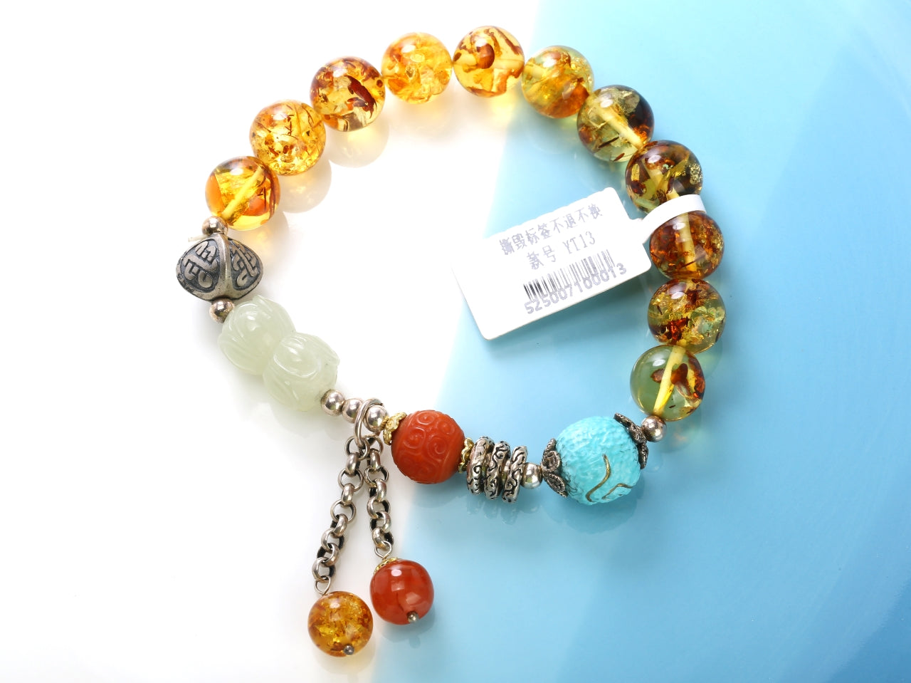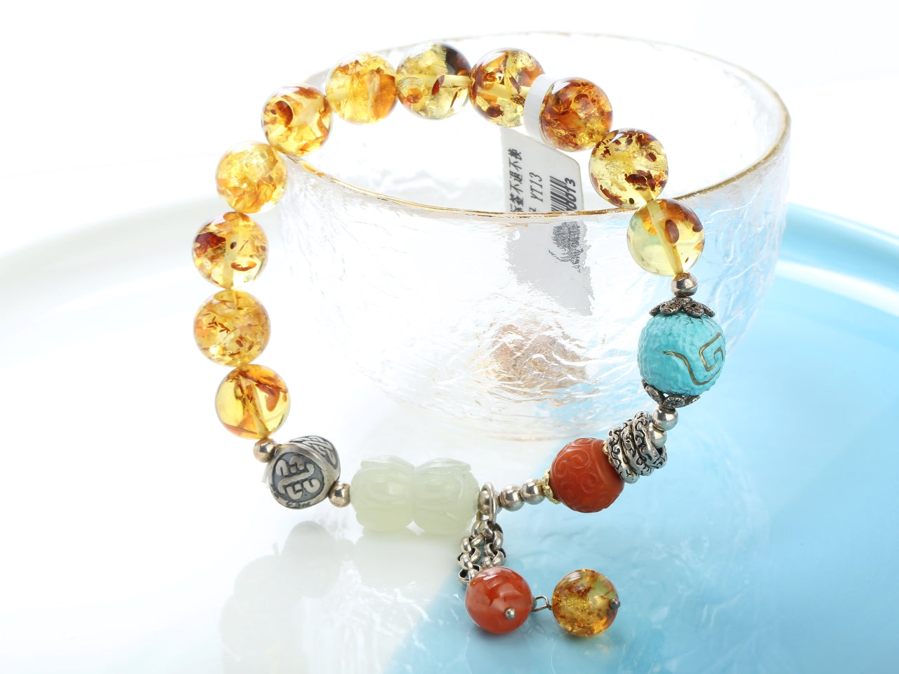 Natural Amber, Hetian Jade & Turquoise Multi-Gem Bracelet | One-of-a-Kind Collector's Piece