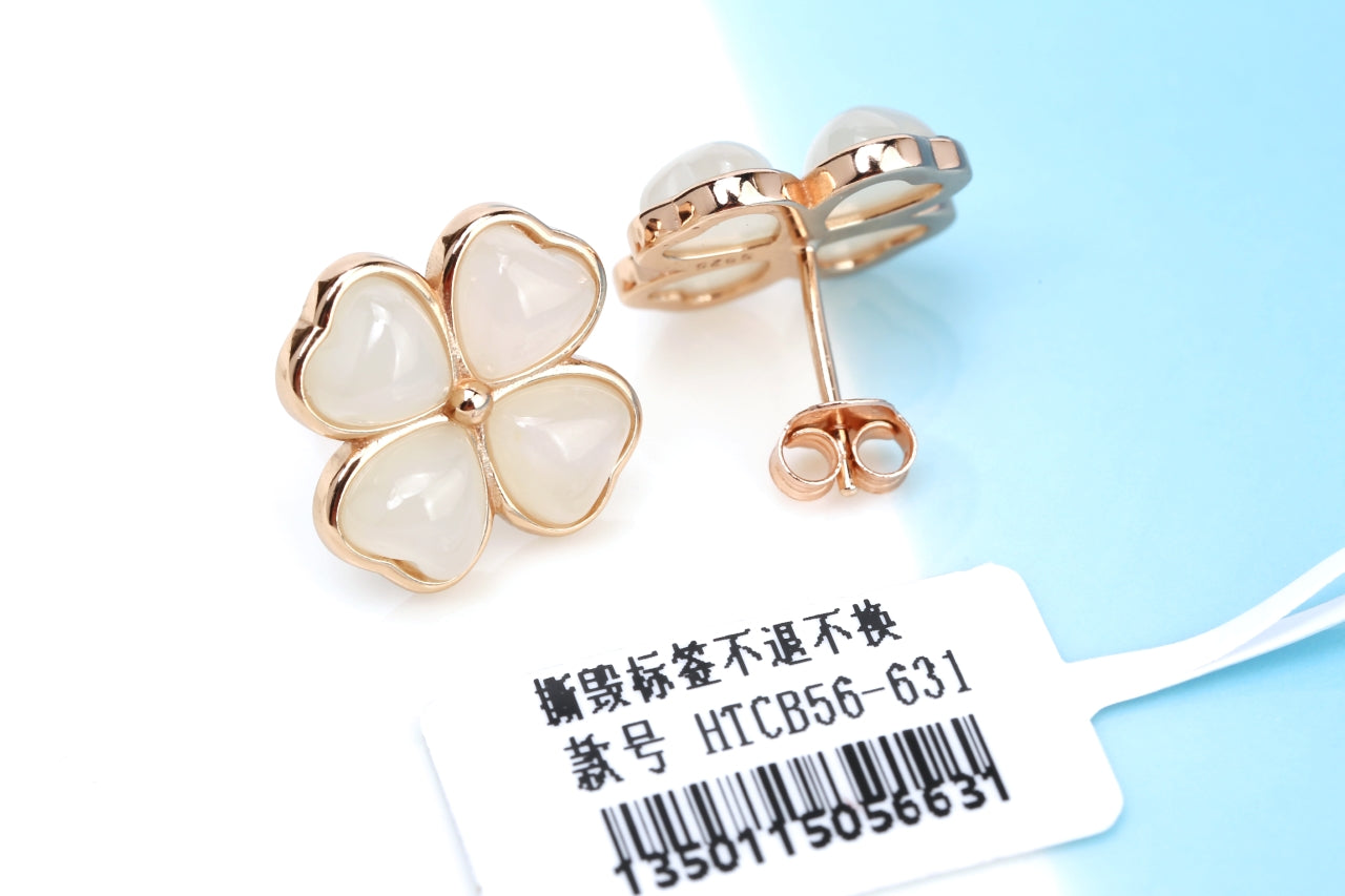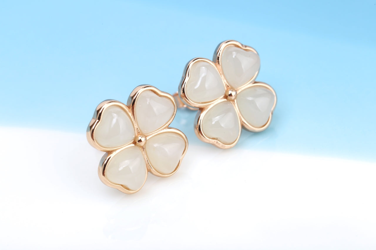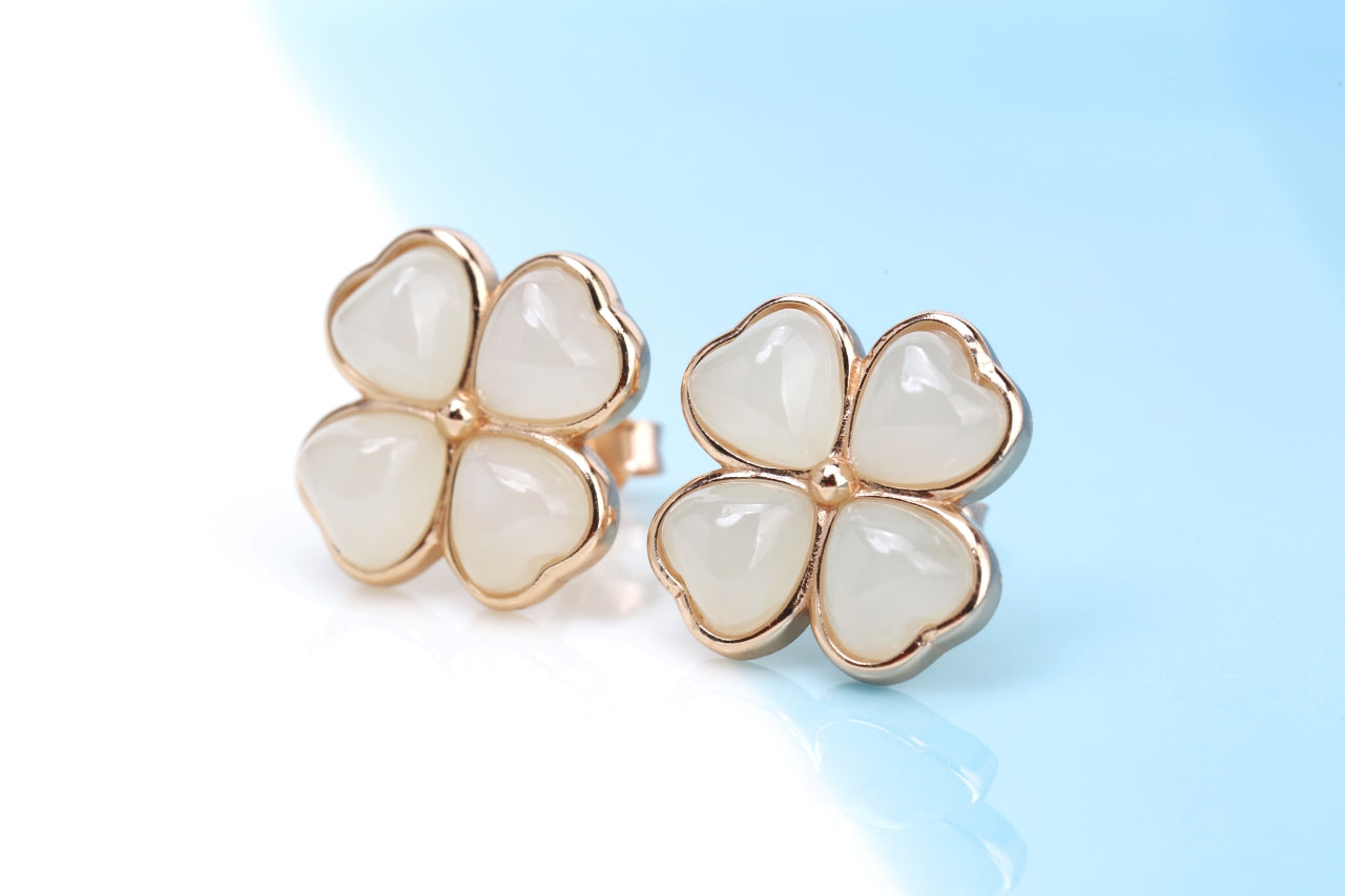 Natural Hetian Jade Four-Leaf Clover Stud Earrings | Lucky Charm in Sterling Silver