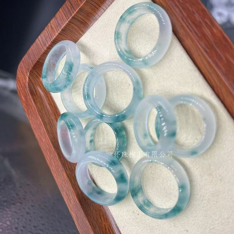 These quartzite rings boast delicate, natural flower - like patterns on a translucent base. With smooth textures and unique blue - green hues, each piece is one - of - a - kind. Lightweight and comfy, they bring an elegant, earthy vibe to daily looks—ideal for nature lovers seeking subtle, artistic jewelry.