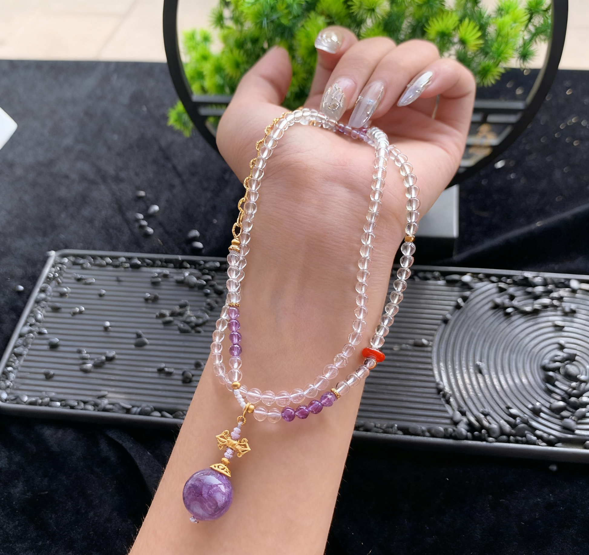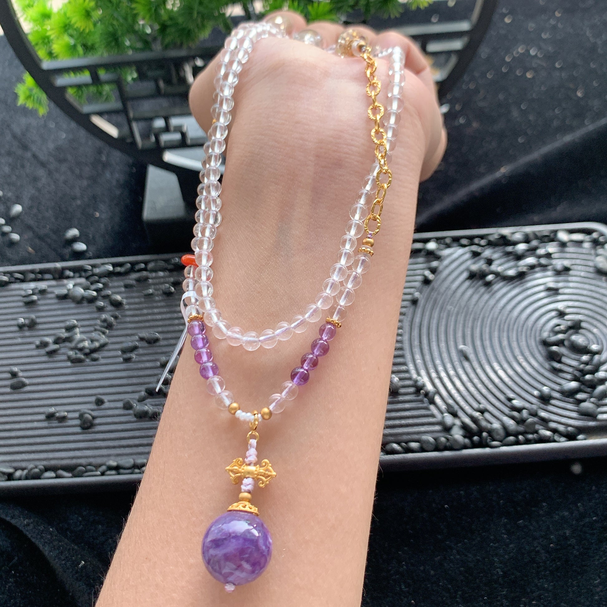 This S925 Charoite Necklace (4mm+) showcases luminous charoite beads with unique patterns, paired with 925 sterling silver details. Blending natural allure and elegant design, it adds a boho - chic vibe to any look. Ideal for daily wear or gifting, bringing distinctive beauty and positive energy.