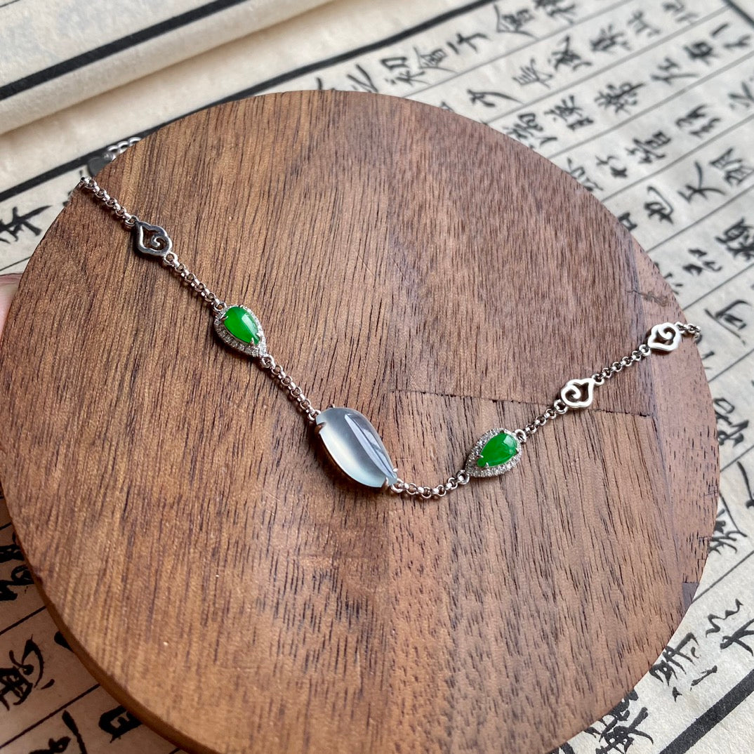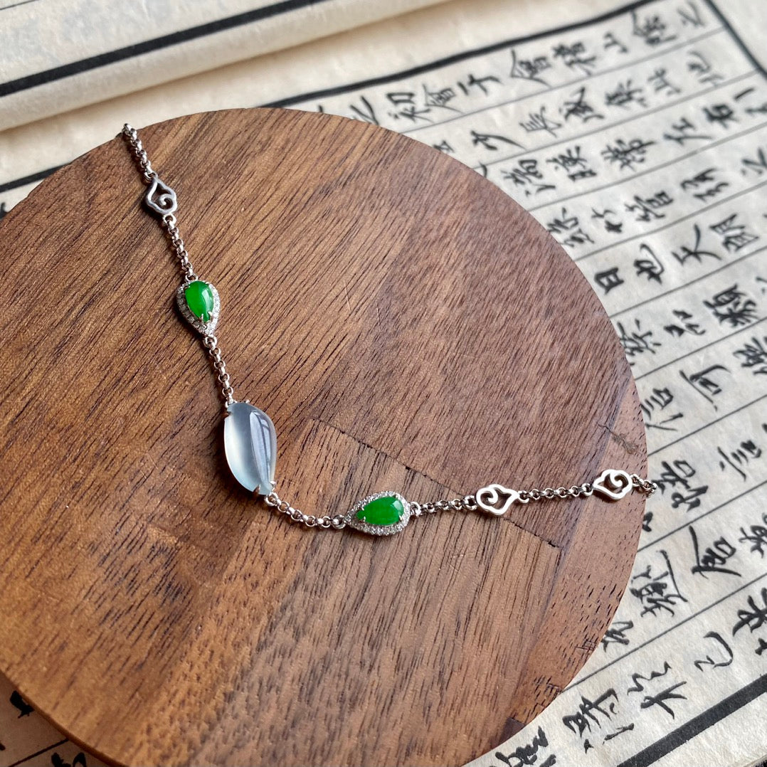 Product Description Made of S925 sterling silver (hypoallergenic, skin-friendly) and natural jadeite free-form pieces—each jadeite retains its original natural shape, with unique textures and curves for an one-of-a-kind look. Silver details connect the jadeite smoothly, keeping the design sleek yet lively. The flexible chain fits comfortably on the wrist; jadeite symbolizes peace and good fortune. Great for daily wear or light formal occasions, matches various outfits. Easy care: wipe with a soft cloth; avoid harsh chemicals. Perfect for self or gifting.