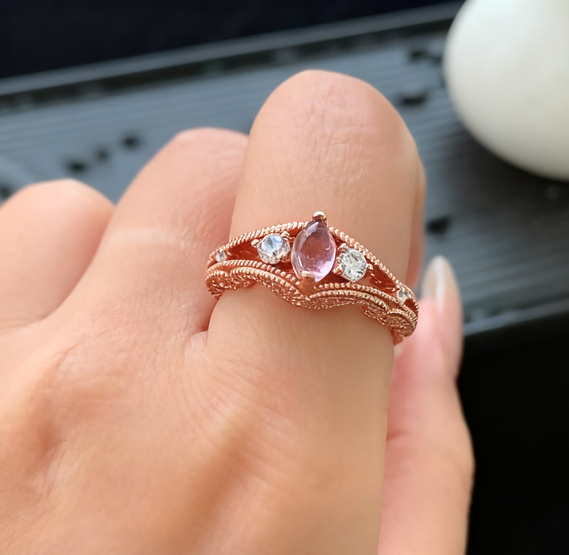 Elevate your style with this S925 sterling silver pink tourmaline ring. The delicate pink gem adds a romantic touch, perfect for daily wear or gifting. A timeless piece that blends elegance and positive energy.