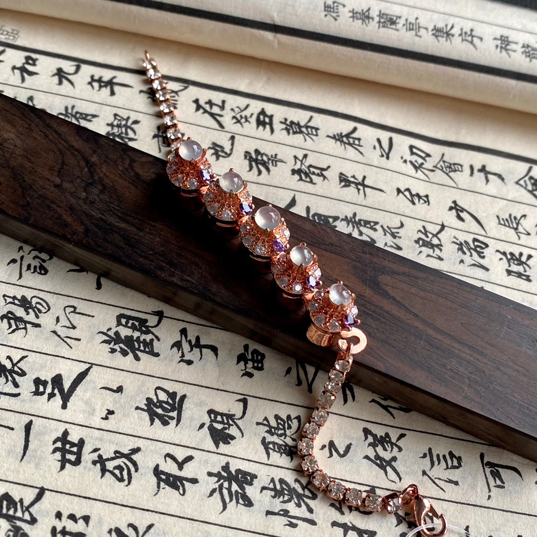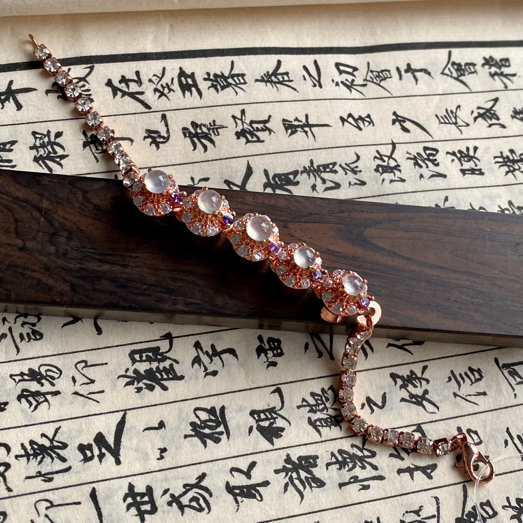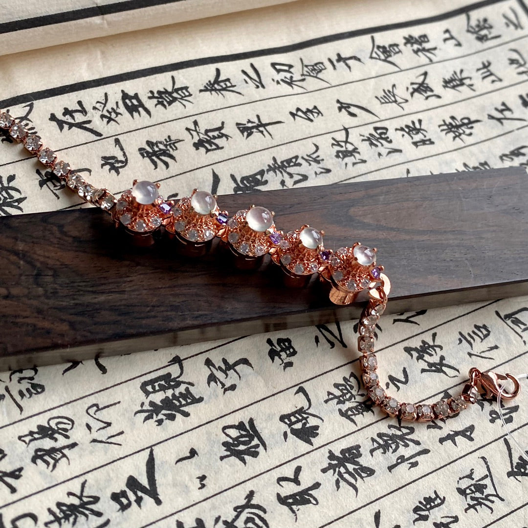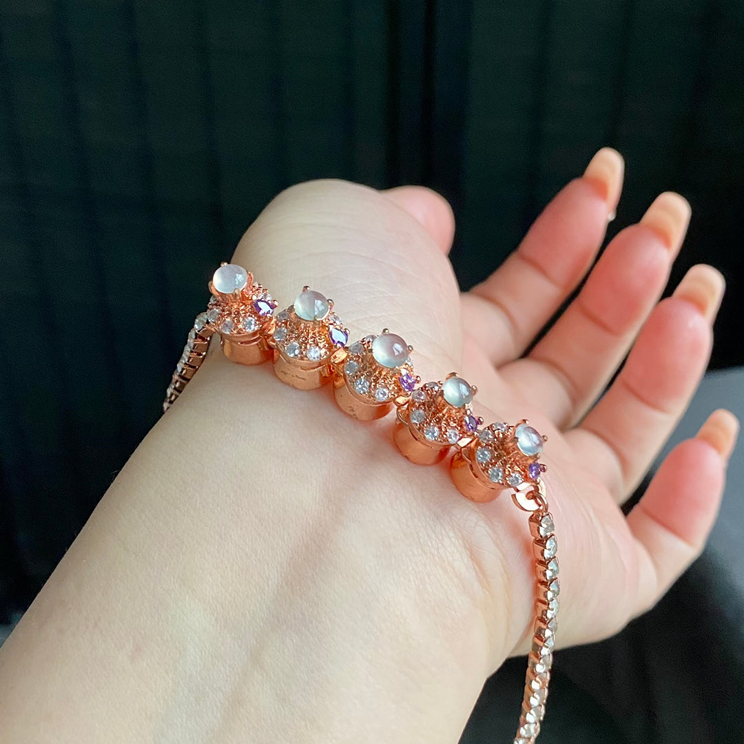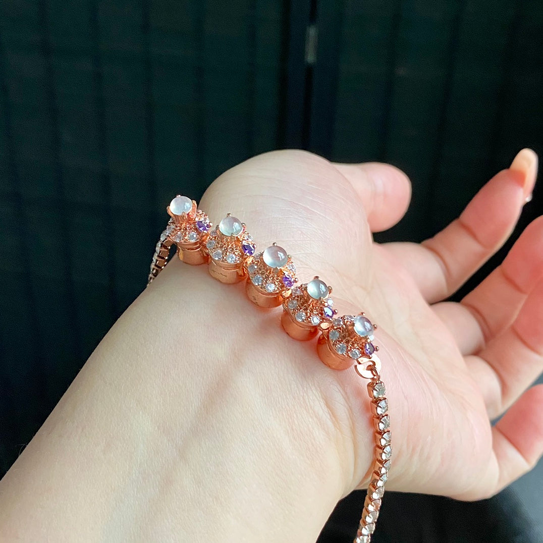 S925 Sterling Silver White Ice Jadeite Cabochon Bracelet