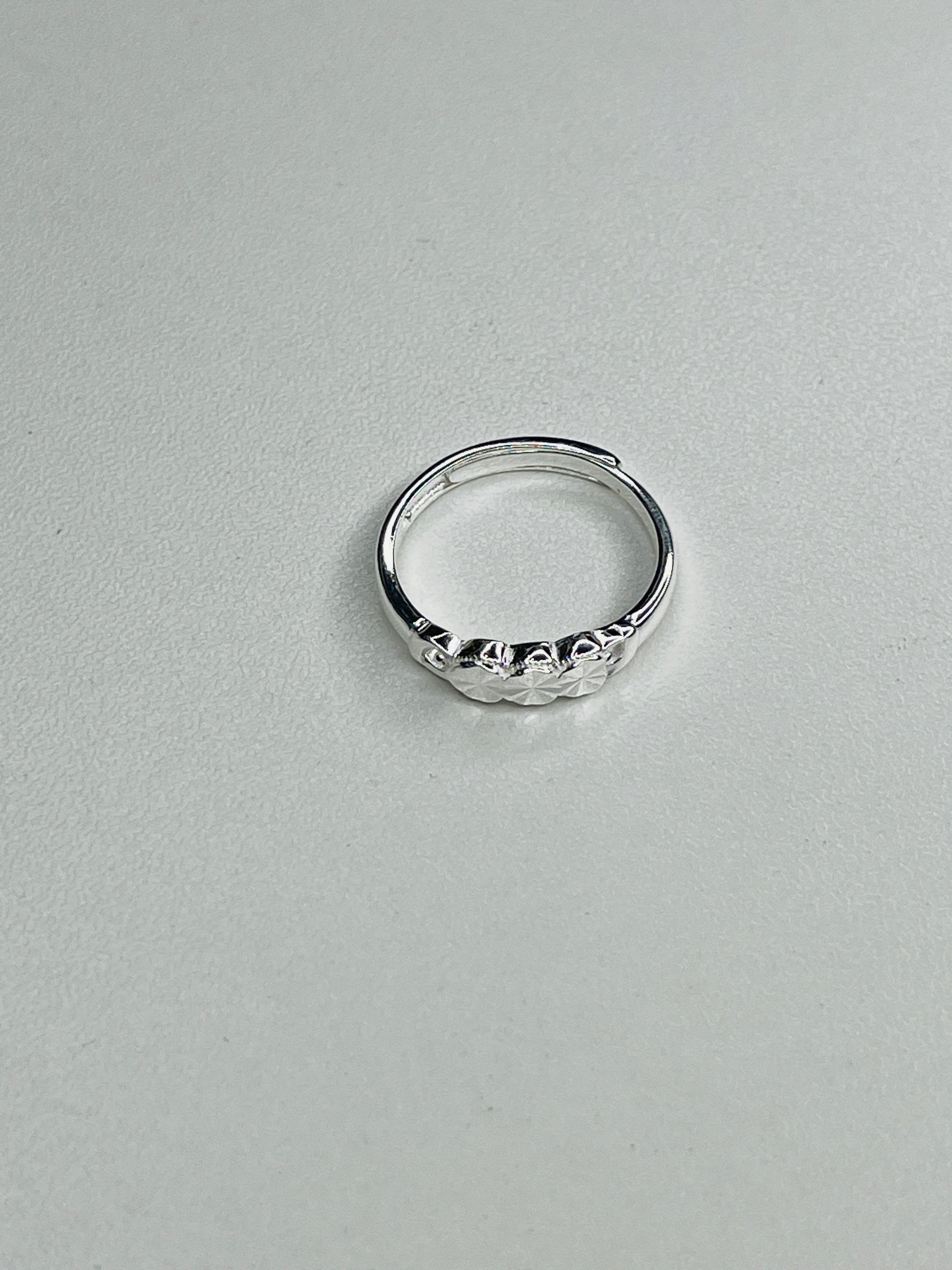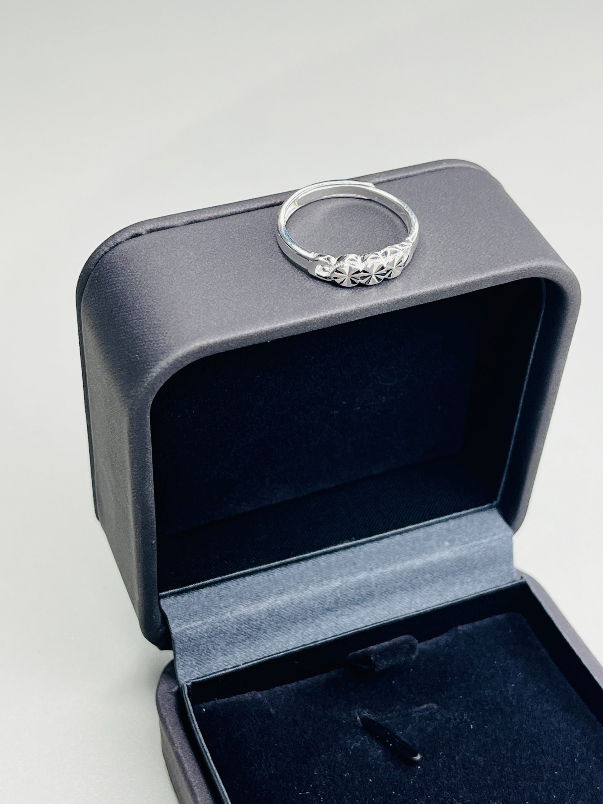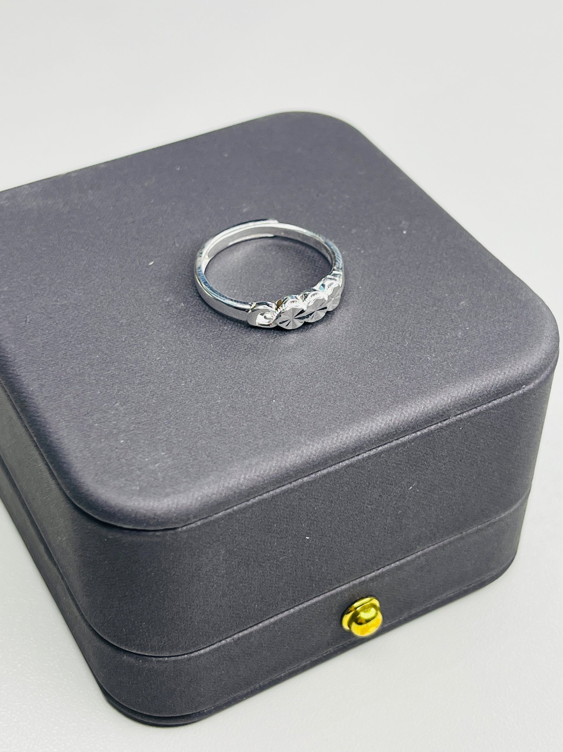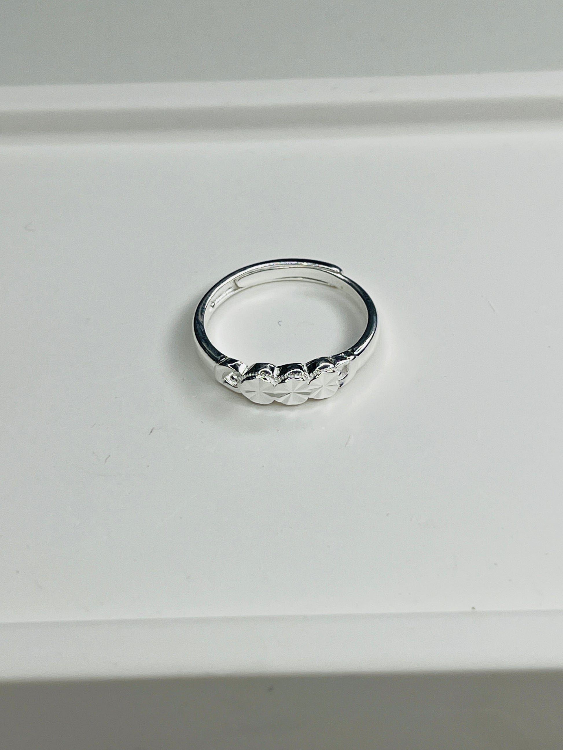 This silver ring features three heart-shaped motifs with floral patterns, designed with an adjustable band for a perfect fit. The polished silver finish and intricate detailing blend elegance with charm. Lightweight and versatile, it’s ideal for daily wear or as a sweet gift—perfect for those who love delicate, heartfelt jewelry.
