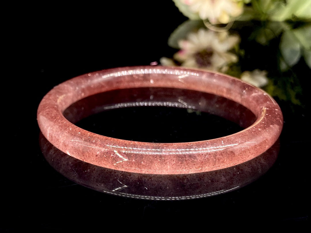 This strawberry quartz bangle has beautiful starry colors and obvious strawberry seeds, you will love it at first sight. size: 56.5# Bracelet width: 7.3mm #HTC74-03