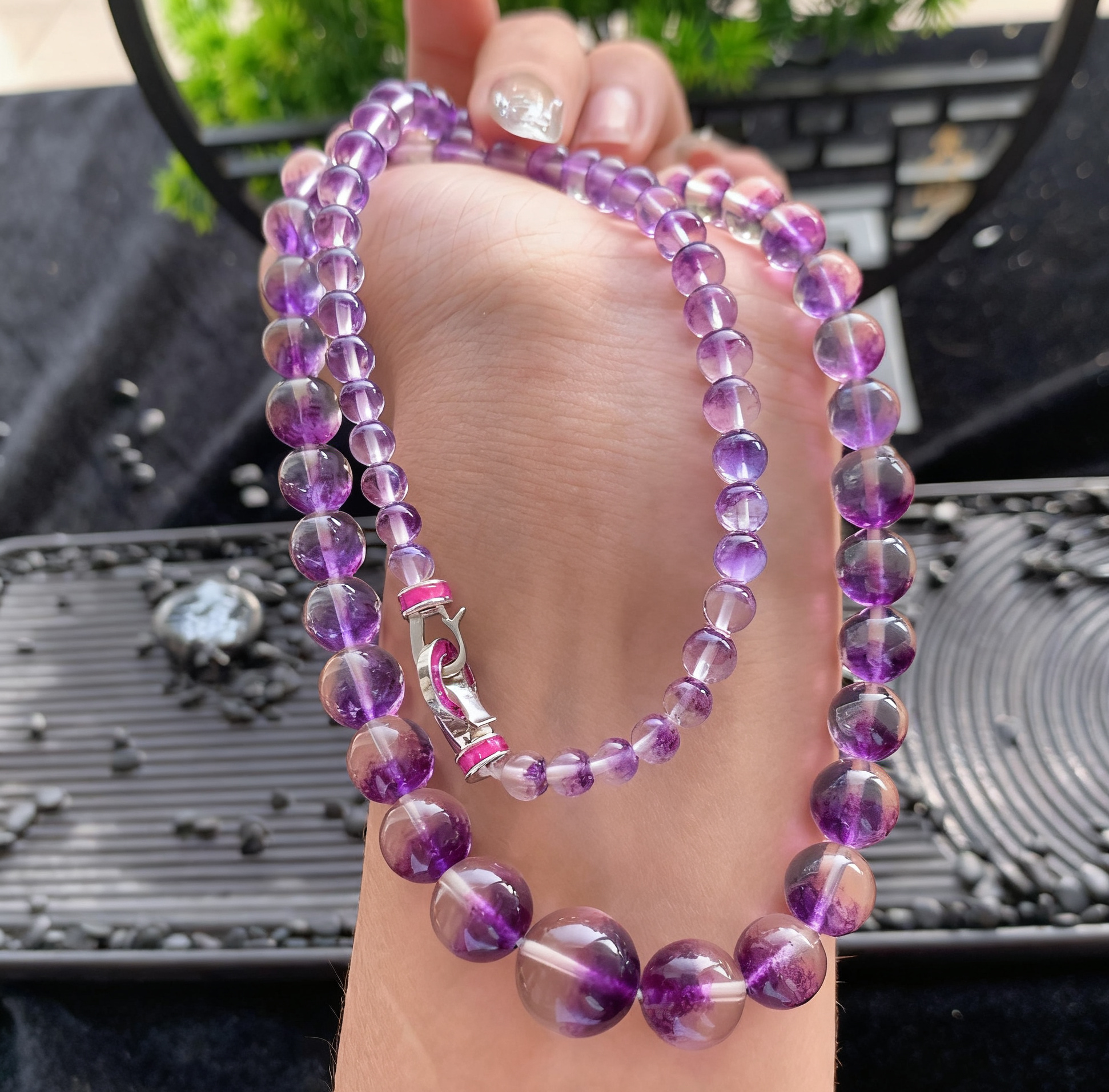 This top - grade purple fluorite tower necklace features natural fluorite beads with gradient purple hues in an elegant tower design. The translucent, vibrant stones add mystical charm and sophistication to any look. Perfect for daily wear or gifting, it’s a timeless piece to elevate your jewelry collection.