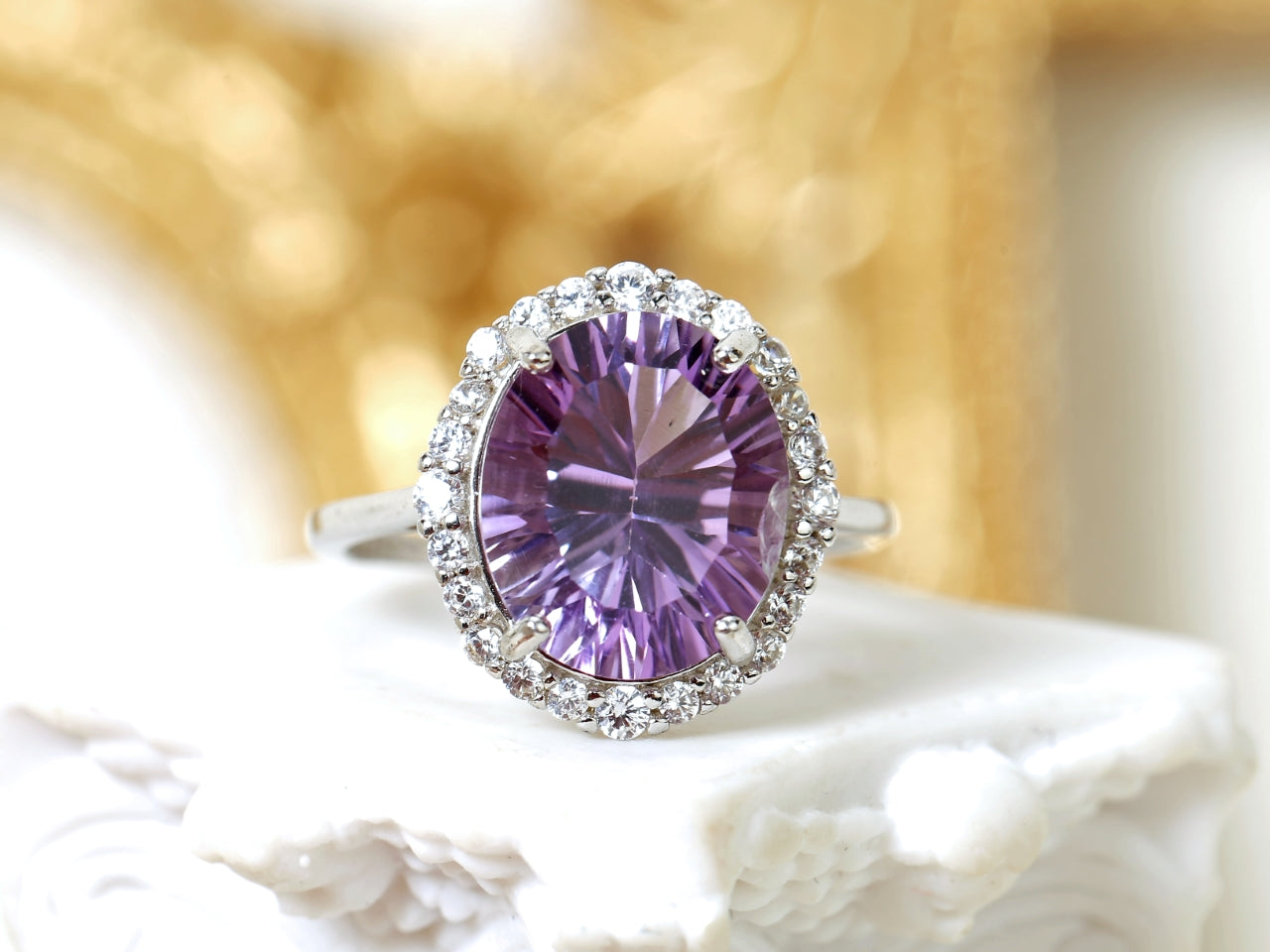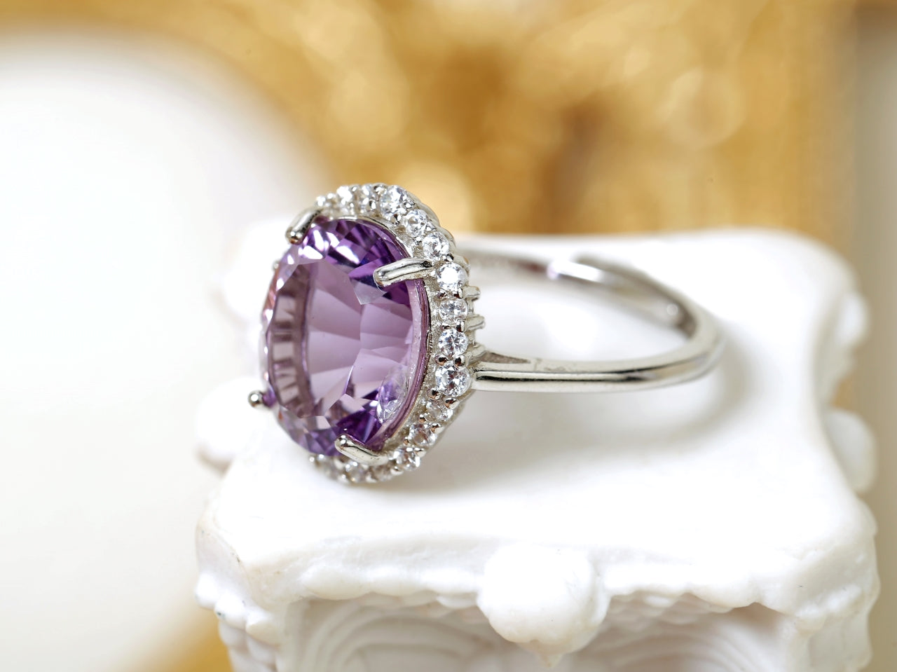 Vintage Style Amethyst Halo Ring: A Timeless Symbol of Elegance and Spirituality